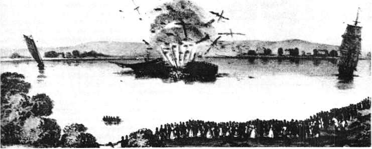 Пробный взрыв торпеды в 1805 году, уничтоживший датский бриг, доказал британскому Адмиралтейству применимость нового оружия Фултона.