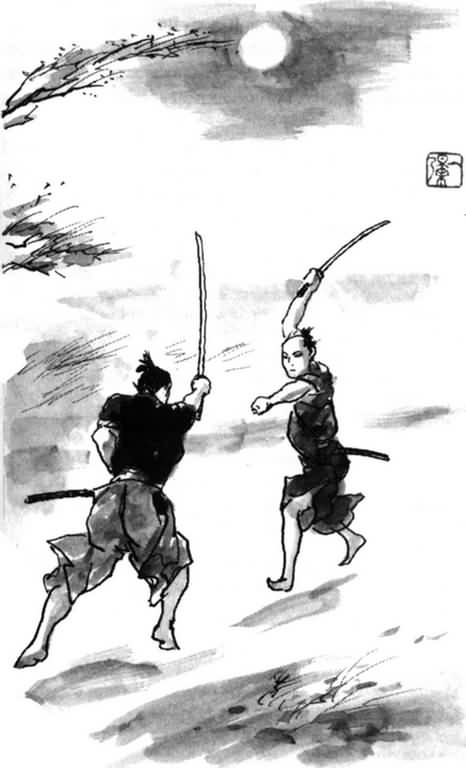 Видел это деревенский староста, который часто приходил на заставу Усуи и поэтому в какой-то мере в искусстве Кэндо разбирался. Он как раз гадал, чем же все это кончится, когда вдруг из тени деревьев появился еще один ронин и, обнажив меч, неожиданным предательским ударом рассек Дзиросабуро бок. Тот обернулся, и ронин разрубил его спереди, сверху вниз.