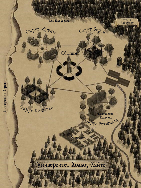 Где книги в кожаных переплетах шепчут на мертвых языках, а пустые мраморные коридоры вызывающе скрипят. Свет никогда не касается земли, постоянное покрывало тумана вьется среди высоких сосен.