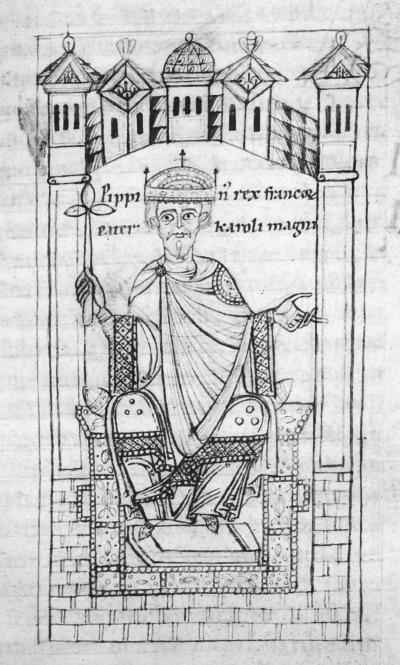 Пипин III Короткий (лат. Pippinus) – сын Карла Мартелла и внук майордома Пипина II – в 751 году, при поддержке папы Захарии, стал королем франков, сместив Хильдерика III, последнего представителя находившейся в упадке династии Меровингов. Через год папа Стефан II даровал Пипину титул римского патриция, тем самым повысив значимость его звания короля франков и положив начало исторической связи между папством и Каролингами. В 754 году в аббатстве Сен-Дени, близ Парижа, тот же папа совершил помазание Пипина и его сыновей Карла и Карломана в качестве королей франков. Пипин дважды (754 и 756) оказывал папе римскому помощь в его борьбе с лангобардами, а в 756-м осуществил знаменитое «дарение Пипина», передав папе отобранные у лангобардского короля Айстульфа земли, на которых и возникла Папская область, положившая начало мирской власти папства. В 759 году Пипин захватил Септиманию и добился полного контроля над Аквитанией, расширив границы своего правления до Пиренеев. Умер Пипин в аббатстве Сен-Дени 24 сентября 768 года. После кончины первого короля из династии Каролингов власть в королевстве была разделена между двумя его сыновьями.