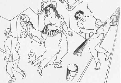 Поль Пуаре стал завсегдатаем их дома, он рисует эскизы туник для выступлений Айседоры и для нее же – изысканные выходные платья. Именно ему в ноябре 1912 года она заказывает оформление мастерской в персидском стиле в связи с предстоящим большим приемом, который Лоэнгрин задумал устроить для великосветского Парижа. Показав хозяйке дома свои наброски и планы, Пуаре присылает плотников, обойщиков, портных, и через неделю как по мановению волшебной палочки вырастает дворец из «Тысячи и одной ночи». Пол устлан пушистыми восточными коврами, сама «часовня» превращена в тропический сад под сине-золотым балдахином, со столиками на две персоны, расставленными так, чтобы парочки могли без помех наслаждаться уединением за рядами экзотических растений. Посередине – изящный, как на персидских миниатюрах, фонтан, вода из которого бьет прямо из-под земли и дождем ниспадает в бассейн из хрусталя, переливающегося всеми цветами радуги. Но особенно поработал Пуаре над оформлением мезонина, где он решил поместить потайную комнату, сосредоточив в ней все наслаждения Востока. Тяжелые занавеси из черного бархата ниспадают до пола, отражаясь в широких зеркалах, усыпанных золотыми звездами и покрывающих стены. Повсюду расставлены мягкие диваны с шелковыми подушками, шитыми золотом, располагающие к гаремной неге. Окна заколочены, а двери, покрытые серебристыми пластинами с геометрическими рисунками и украшенные двойным черным крестом, напоминают этрусские погребения.