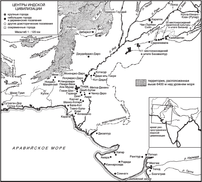 [Закрыть]. Они расположены на расстоянии 650 километров друг от друга; находящаяся между ними часть долины Инда, расположенная напротив Сулеймановых гор и района Багги, сужается, на этом основании можно сказать, что эта территория находилась под влиянием обоих городов. Оба города расположены на территории одного речного бассейна и обладают безусловной общностью культуры, которая характерна для всей территории в ареале распространения индской цивилизации [91]91