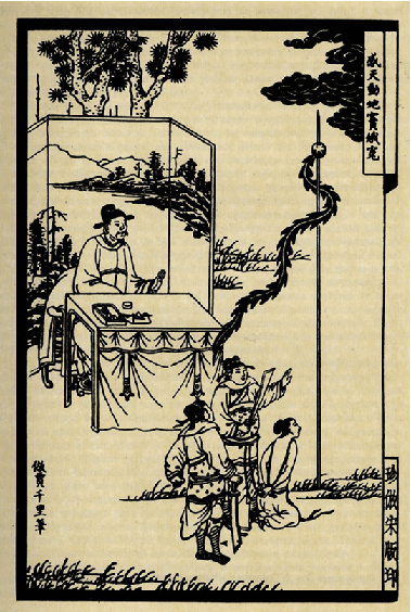 Сцена казни Доу Э. Гравюра в 'Изборнике юаньских драм'. 1617 г.