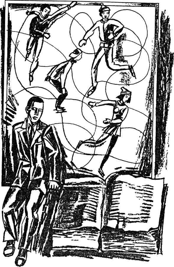 Огромное ледяное поле кишело людьми. В глазах рябило от пестроты костюмов – голубых и оранжевых, красных и желтых, с полосками, без полосок, в змейках огнистых «молний», в переливчатом блистанье снежной и ледяной пыли. Кого здесь только не было!.. Одни плавно скользили, словно плыли, сомкнув пальцы за спиной. Другие летели, взмахивая поочередно руками, похожие на лучистые звезды. Третьи катались парами, в обнимку, или, ухватив друг друга за пояс и в лад отталкиваясь ногами, вытягивались длиннейшей цепочкой, на манер товарного состава, идущего порожняком. Но в одиночку ли, по двое или целыми группами, все неслись в одну сторону, мчались по кругу, и постепенно начинало казаться, что не люди, а сам стадион кружится, словно гигантская пластинка.