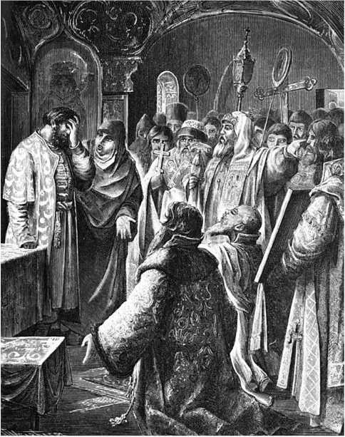 Борис Годунов всех обвел вокруг пальца. Он загодя купил у Греческого патриарха право учредить в Москве новую Церковь, вестницу «новой веры», то есть христианство на греческий лад. Ее открыли 26 января 1589 года, когда слабоумный царь Федор был еще жив! Тогда у Кремля появился «карманный» духовный владыка, бывший архиерей Иов, он и совершил обряд миропомазания над самозванцем Борисом, назвав его царем.