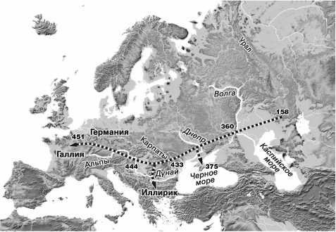 Карта продвижения гуннов. Она вызывает много вопросов у географа