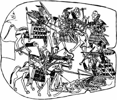 Тюркские воины. Большая пластина из Орлатского могильника. Самаркандская область. Узбекистан