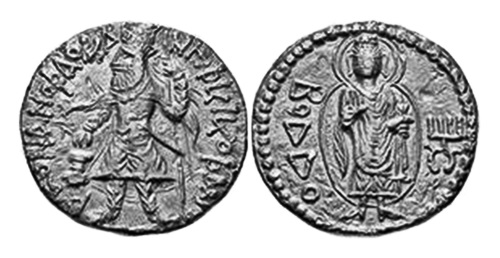 Монета с изображением царя Канишки на одной стороне и Будды – на другой