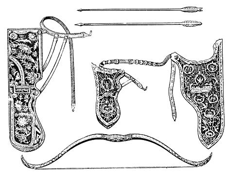 Набор вооружения конного воина, состоявший из лука с налучием и стрел с колчаном, на который в походе надевался чехол