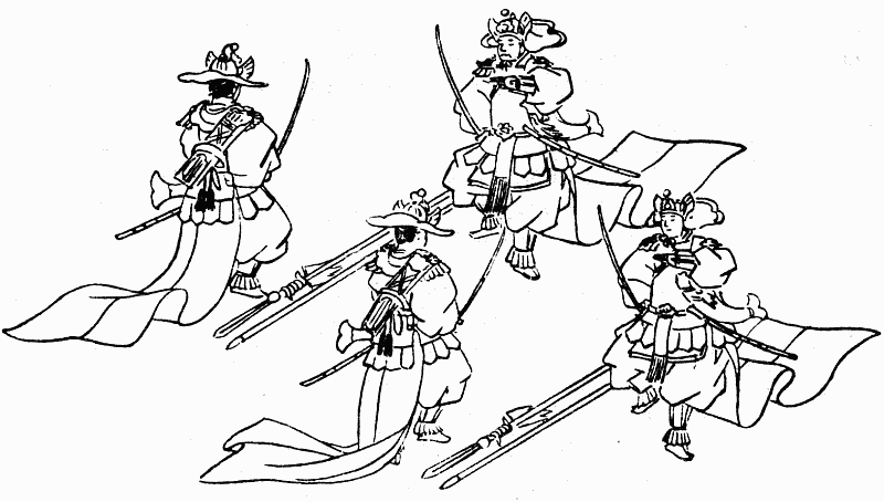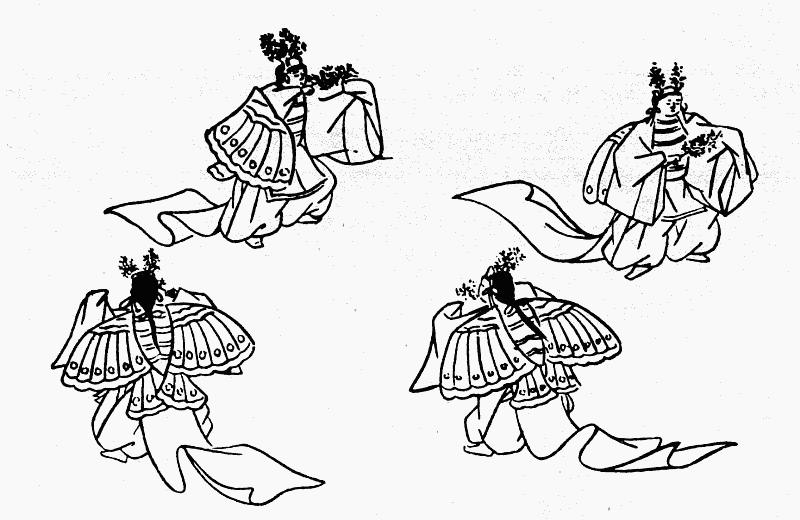 «Осенний ветер» (Сюфураку) – танец китайского происхождения, сочиненный якобы китайским императором Сюань-цзуном (712–756). В Японию проник в начале X в. Исполнялся четырьмя танцорами (рис. 9).