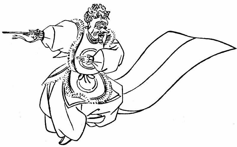 «Князь Лин-ван» (Рёо) – танец китайского происхождения, исполнялся одним танцором в маске, с кнутом в руке. Изображал эпизод из жизни китайского князя Лин-вана, который, скрыв свое красивое лицо под устрашающе-уродливой маской, преследовал вражеское войско (период Чуньцю– 770–476 гг. до н. э.) (рис. 7).