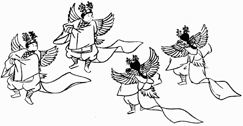 «Танец птиц» (Тори-но маи) – детский танец, завезенный из Индии через Китай. Исполнялся четырьмя девочками в костюмах сказочных буддийских птиц калавинок, обычно во время торжественных буддийских церемоний (рис. 13).