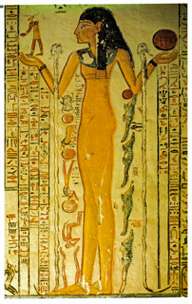 Нефтида изображается в виде женщины с символами в виде её имени, украшающими её голову.