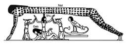 6.4.В. Нут – божественное звёздное небоНут изображается в виде усеянной звёздами женщины, изогнувшейся в небе.