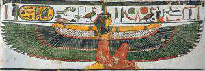 Египетское правосудие изображается в виде женщины с пером страуса на голове, держащей в руках символ правды, чтобы подчеркнуть основную цель правосудия – поиск правды. Символ Маат – перо правды/страус, используемые на весах правосудия.