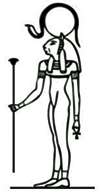 Сатис изображают в виде женщины в белой короне с рогами антилопы.