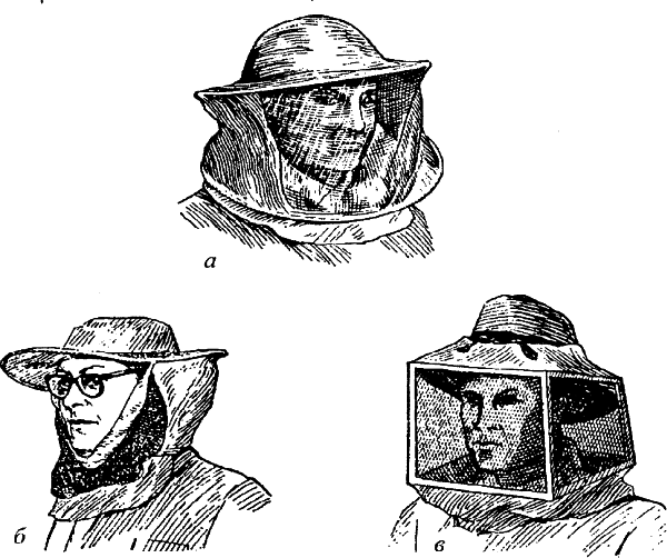 Служит для защиты головы и шеи от ужаления пчелами, имеет вид шляпы с пришитой сеткой. Изготавливается она из хлопчатобумажных тканей светлых тонов. Передняя часть сетки шьется из черного тюля, обеспечивая хорошую видимость и вентиляцию. Лучший вариант – сетка, целиком сшитая из тюля. Верх лицевой сетки делается откидывающимся.