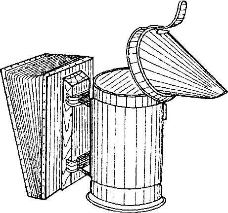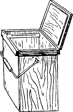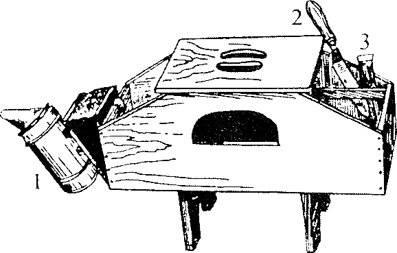 Рис. 18. Рабочий ящик-табурет пчеловода: 1 – дымарь; 2 – пасечный нож; 3 – пасечная стамеска