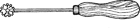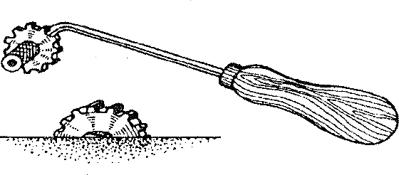 К верхнему бруску рамки вощина прикатывается катком. Состоит он из рифленого валика диаметром 14 мм, металлического зубчатого диска диаметром 25 мм и шириной 2 мм и металлического стержня с деревянной накладкой. Длина катка 220 мм.