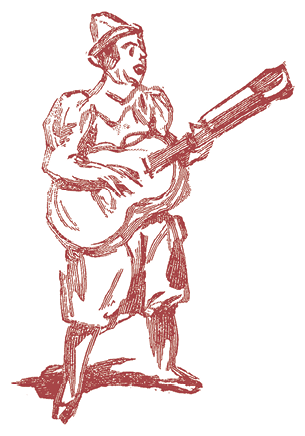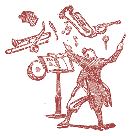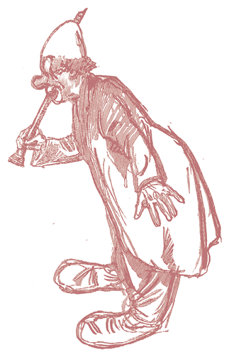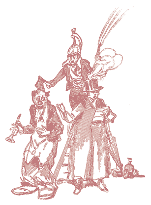 Перейдем теперь к их музыкальным инструментам. Кларнет, неожиданно с треском складывающийся и исчезающий, а потом снова появляющийся у затылка, – это трубка, составленная из отдельных колец, а кончик, появляющийся у затылка, заранее прикреплен к парику и скрыт шляпой. Рыжий поворачивается – кларнет складывается как подзорная труба, а шляпа спадает.