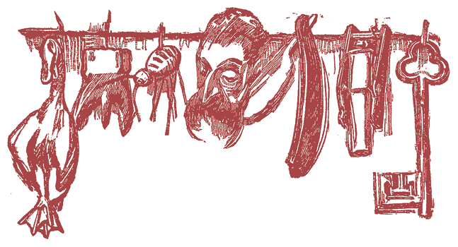На балках навешаны, точно платяные и половые щетки в москательной лавке[21]21