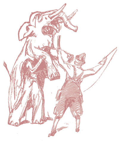 Это обтянутое шерстяной материей чудовище, в котором могут поместиться два человека. Слон вместе с быком, лошадью и обезьяной той же «породы» составляют их зверинец.