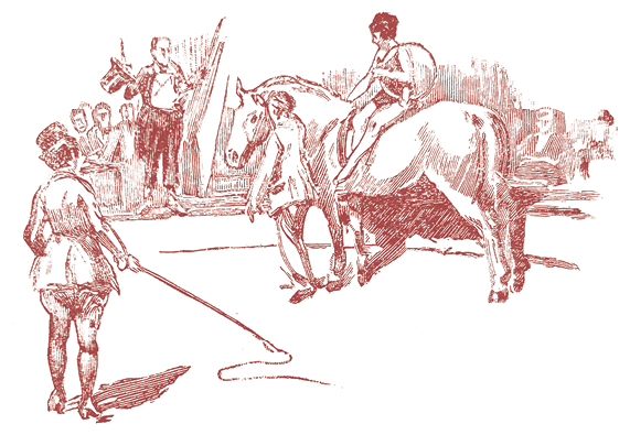 За время настоящего моего экскурса в область музыки на арену выступили наездники. Они имеют не очень значительный, но преданный контингент любителей-знатоков, и, право же, досадно, что большая часть зрителей не оценивает терпения, проявленного в дрессировке, и красивую посадку. Какое прекрасное зрелище – хороший всадник на породистой лошади!