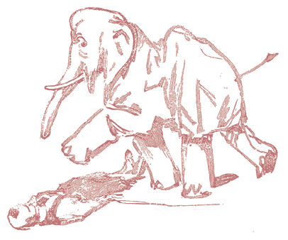 «Слоны» были раньше интермедией, в которой на арену выходил псевдоукротитель со своим животным; последнее изображали два человека, покрытые сделанной из материи шкурой. Однажды две пары ног поссорились и подрались тут же на арене. Получился нерассчитанный комический эффект, но клоун, которому так не повезло, не понял этого и не сумел воспользоваться случаем; взбешенный, он рассчитал своих «слонов».