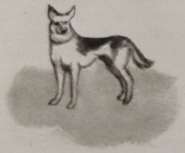 Курт оглянулся и свистнул. Сейчас же послышался лай, и из дома выбежал крупный, в серых подпалинах пёс, похожий на волка. Пёс гордо вёз маленькую тележку.