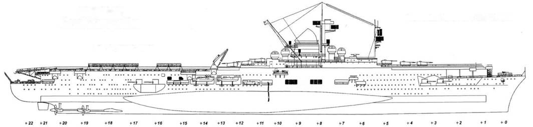 Теоретический чертеж авианосца Graf Zeppelin Проекция «корпус»