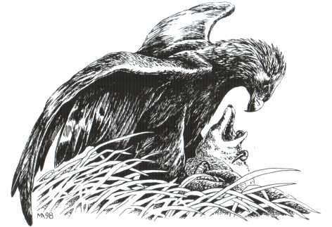 Откуда же взялось его жутковатое название – могильник? В нем угадывается связь птицы с... могильными курганами. Эти возвышения птицы используют в качестве присады. Именно на них или глинобитных мавзолеях нередко можно увидеть птиц, присевших отдохнуть во время охоты и высматривающих добычу. Полет у могильника медленный, с редкими взмахами крыльев. В дневные часы птицы подолгу парят в потоках восходящего воздуха. Завидев добычу, орел ловит ее в полете. Рацион его состоит из грызунов, преимущественно сусликов, песчанок, хомяков. Иногда ловит куропаток, уток, может напасть на зайца. Голос могильника – своеобразный клёкот, немного напоминающий собачье тявканье: «тьяф-тьяф-тьяф».