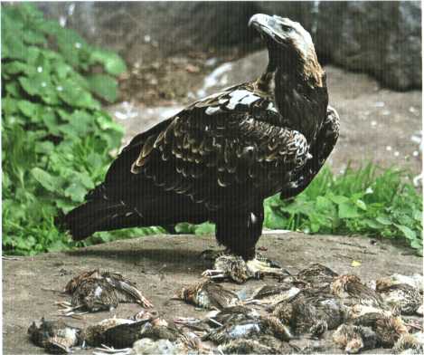 Так уж повелось, что именно этот хищник стал для нас олицетворением силы, могущества. О беркуте сложено множество сказаний, его изображение красуется на гербах многих влиятельных фамилий. Ловчий беркут – преданный друг и верный помощник степных кочевников в Средней Азии. Обученная птица была в состоянии нападать не только на лисиц и зайцев, но и на молодых волков и даже быстроногих джейранов. Пернатый охотник хватает добычу обеими лапами так, чтобы она не могла двигаться – одной лапой за голову, а второй – за крестец. В таком положении он ожидает своего хозяина. Хороший беркут за три месяца добывал до 30 лис, а беркут-рекордсмен – более 300 лис в удачный год! В природе беркуты доживают до 38 лет, в неволе – до 50!