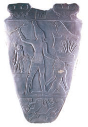 Царь Верхнего Египта побеждает в битве. Изображение на каменной плите