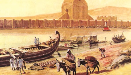 Город Вавилон был основан в глубокой древности на берегу Евфрата. Его название означает «Врата бога». Город быстро рос и богател. Этому способствовало его выгодное положение на пересечении речных и караванных путей, ведущих из Южного Междуречья в Северное. Сюда со всей страны стекались разнообразные товары: финики, зерно, изделия ремесленников. Сюда же приплывали корабли иностранных купцов с грузами благовоний, красителей, тонкого полотна, олова, бронзы. Для удобства торговли вавилоняне одними из первых придумали деньги. Ими служили серебряные слитки. Самый маленький слиток (сикль) весил 8 граммов, побольше (мина) – 500, а самый большой (талант) – 30 килограммов. На один сикль можно было купить 250 килограммов зерна или 3 литра растительного масла.