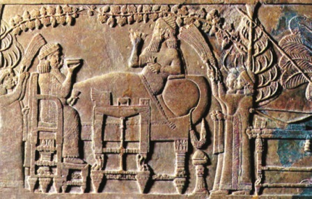 Ассирийский царь, пирующий со своими приближенными. Древний рельеф