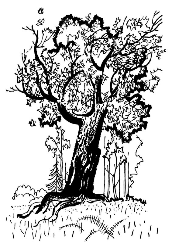 Дуб был так могуч, что, ползая по его стволу, дятел должен был двести раз переставить лапы, чтоб описать полный круг.