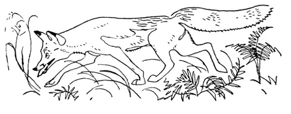 Лисица медленно пересекла поляну и скрылась в кустах.