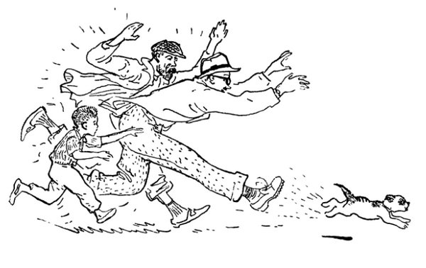 И трое отчаянных мальчишек бросились в погоню за щенком.