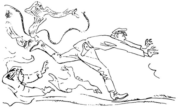 Рука милиционера легла на плечо Вити. Однако юркий мальчишка вырвался. Еще минута, и он был бы далеко!