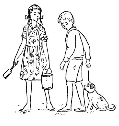 – Наконец-то! – сказала девочка, когда Витя подал ей полное ведро. – Давай поливай, а мы со щенком будем заравнивать ямки. Ладно?