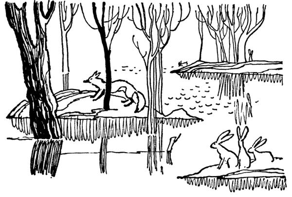 Но и он не надежен. Вчера сидели на гриве зайцы, а сегодня ни заячьего острова, ни зайцев – пузыри!