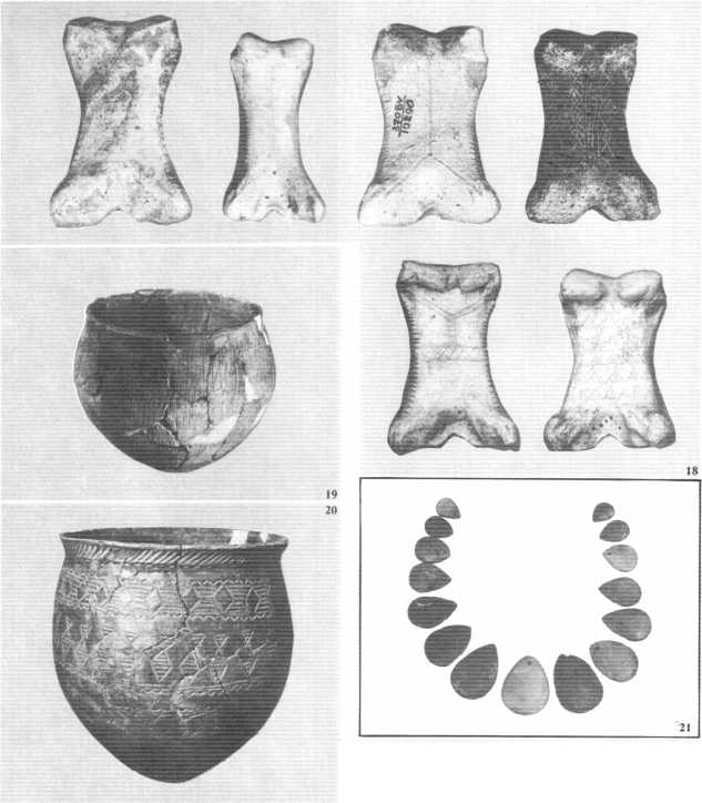 Среди археологических материалов богато представлены образы древних орнаментов. Вероятно, орнаментом покрывались не только керамические сосуды и изделия из кости, но и многие другие не дошедшие до нас предметы быта и культа. В особом «пристрастии» традиционных культур к орнаментальным композициям обнаруживается некое принципиальное соответствие или родство между орнаментом как видом изобразительного искусства и мифом как формой и основным содержанием раннеисторического мышления. Для орнамента характерна абстрактная, чуждая перспективе точка зрения; орнамент не требует от зрителя включения в иную среду – в мир изображения. Эти свойства орнамента полностью соответствуют коренным установкам первобытного мифа. Через пространственную организацию орнаментальных композиций, их характерную ритмику древний человек выражал свое чувство времени и удовлетворял потребность в причинно-следственном обосновании бытия. Орнамент здесь – не просто украшение предмета, но и определенная символическая система, существующая в чутком взаимодействии с формой, материалом и самим «мифом» вещи.