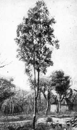 Слоновые травы и древесная растительность. Среди травяной растительности, покрывающей равнину, по которой мы едем, много различных злаков, в числе их характерные для горной злаковой саванны так называемые слоновые травы [главным образом роды пеннизетум (Pennisetum) и антропогон (Antropogon), а также роды эрагростиса (Eragrocstis) и людеции (Loudetia simplex)]. Они образуют по краям дороги высокие заросли, поднимающиеся большей частью на высоту до двух-трех метров. Иногда через такие травяные, равно как и через сменяющие их кустарниковые чащи, без вырубки пробраться совершенно невозможно.