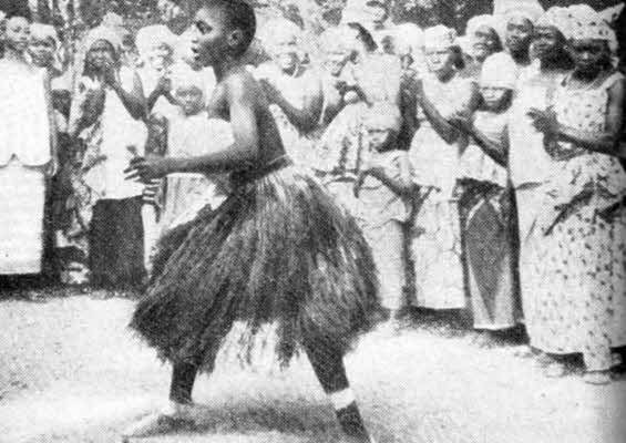 Народные танцы. Деревня Калеа. Танцует мальчик. На нем юбка из волокна местной пальмы