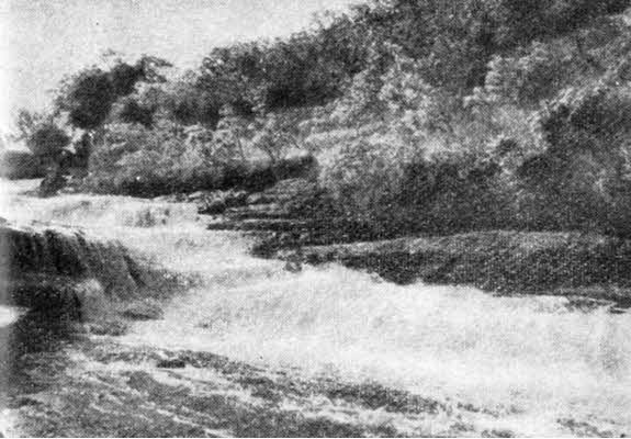 «Большие водопады» и водопад «Подвенечная фата». Мне представляется известнььм преувеличением присвоение первым водопадам название «Больших». Конечно, ни в какой мере их нельзя сравнивать, например, с Ниагарским водопадом, который мне довелось видеть; правая часть его, находящаяся в США, падает с высоты пятидесяти одного метра при ширине по гребню в триста двадцать три метра, а левая – канадская – низвергается с сорока восьми метров, имея в ширину девятьсот четырнадцать метров.
