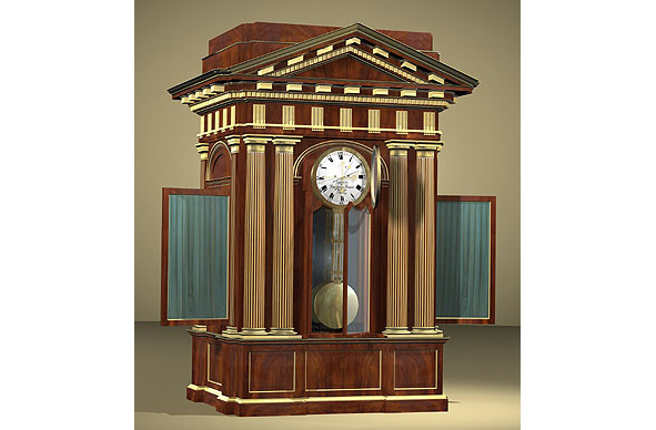 Внешне устройство было выполнено в виде этакого грандиозного шкафа, высотой в четыре метра с портиком и сдвоенными колоннами. Он был выполнен из красного дерева и украшен позолоченной бронзой.