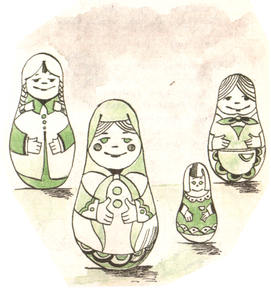 Назови матрешек-подружек слева направо. Как зовут самую маленькую матрешку? Самую высокую? Кто стоит последней справа? А первой слева? Выигрывает тот, кто не ошибается.