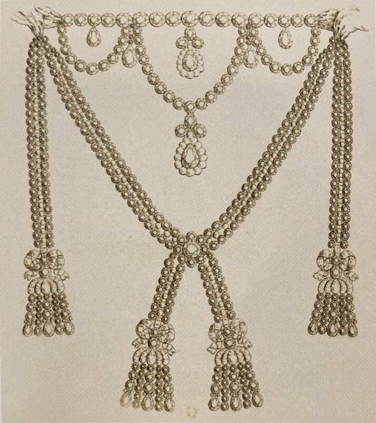 Большое бриллиантовое ожерелье Ш. О. Бёмера и П. Бассанжа. Эстамп. 1786 г.