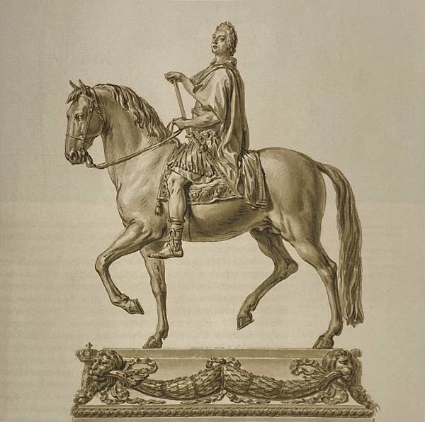 Конный монумент Людовика XV работы Э. Бушардона. Эстамп. 1764 г.