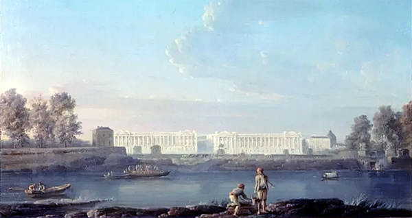 Вид площади Людовика XV с левого берега Сены. Художник А. Ж. Ноэль. 1780 г. Хорошо видны здания, спроектированные А. Ж. Габриелем